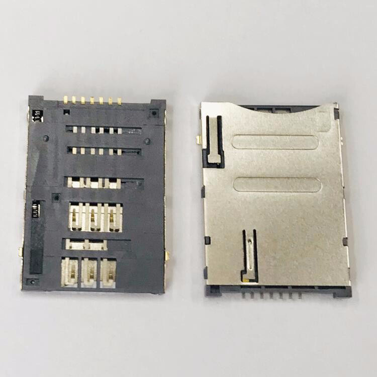 SIM PUSH 6P卡座 6+1PIN帶檢測腳 14.0長有柱