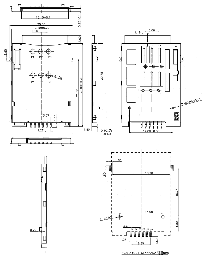 TF卡座 SIM-06A 臥式兩腳全貼 有柱帶彈 大TF卡