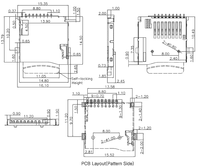 TF卡座 TF-01A卡座 外焊自彈9P 四腳全貼 有柱