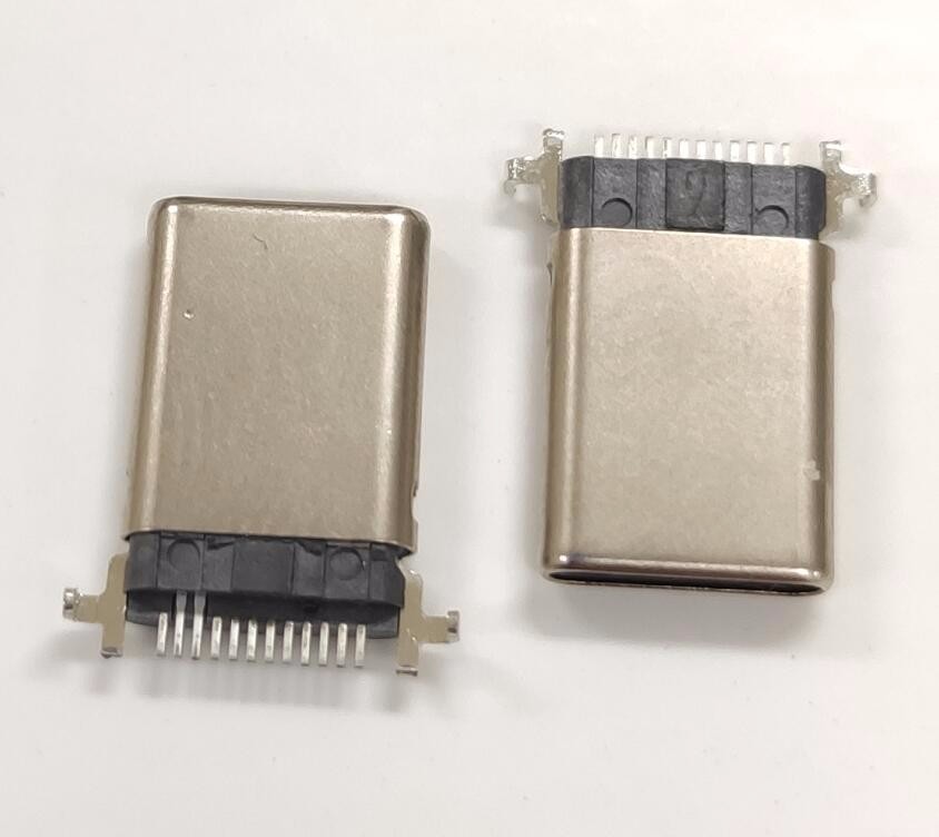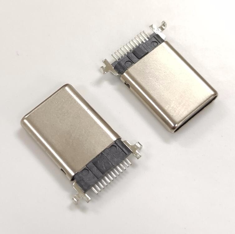 TYPE C 12P公頭 沉板前插后貼SMT公頭 拉伸款鍍鎳