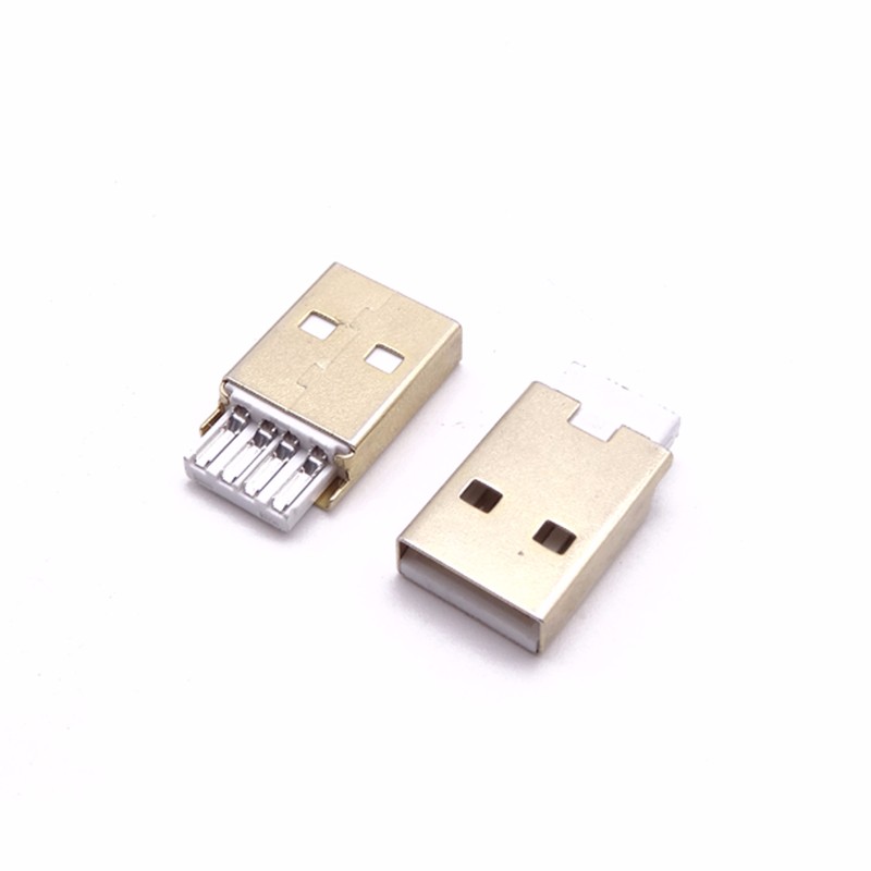 USB 2.0公頭 A公焊線式 窄邊膠芯 4P焊線 外殼鍍金