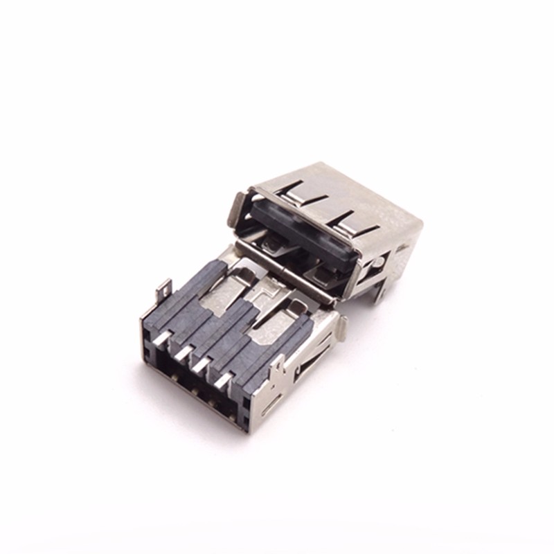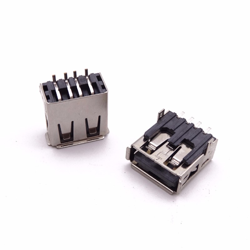 USB 2.0母座 90度13.7長(zhǎng) 短腳帶孔插板 針貼片 7.0H高 卷邊黑膠