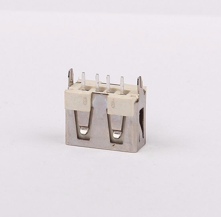 USB 2.0母座 180度短體10.0立插直邊 LCP白膠