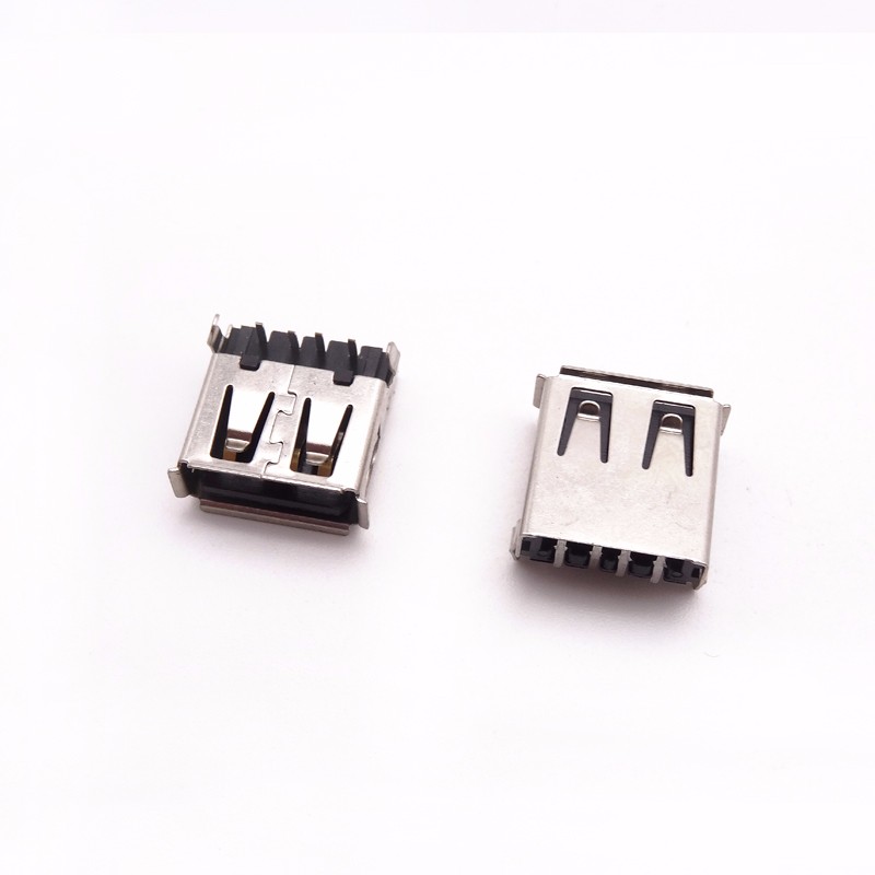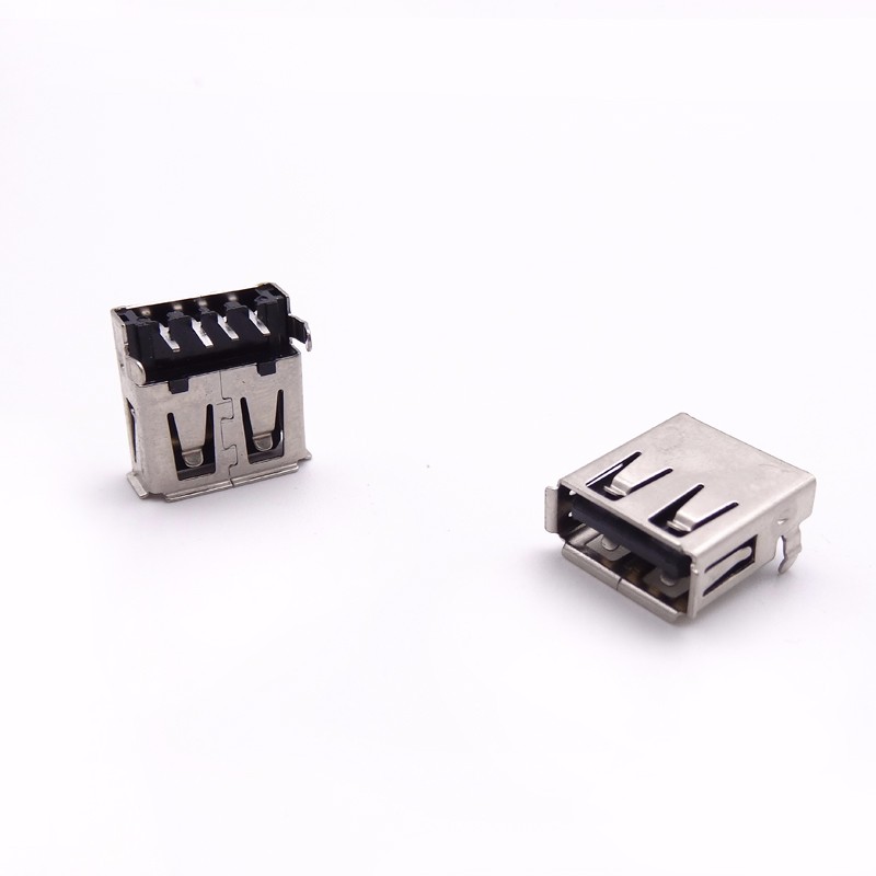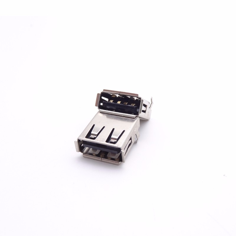 USB 2.0母座 沉板DIP彎腳插板 卷邊 鐵殼 黑膠