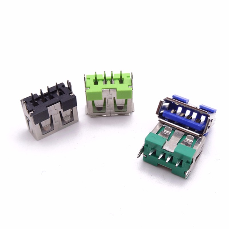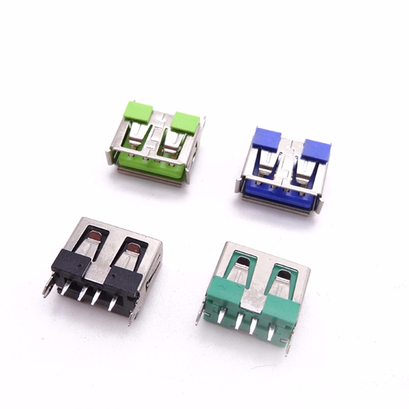 USB 2.0母座 短體10.0立插直插母座 卷邊直邊 彩色膠芯