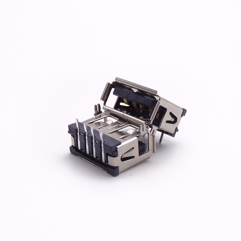 USB 2.0母座 短體10.0前兩腳插板 一字型膠芯 卷邊