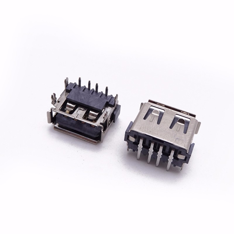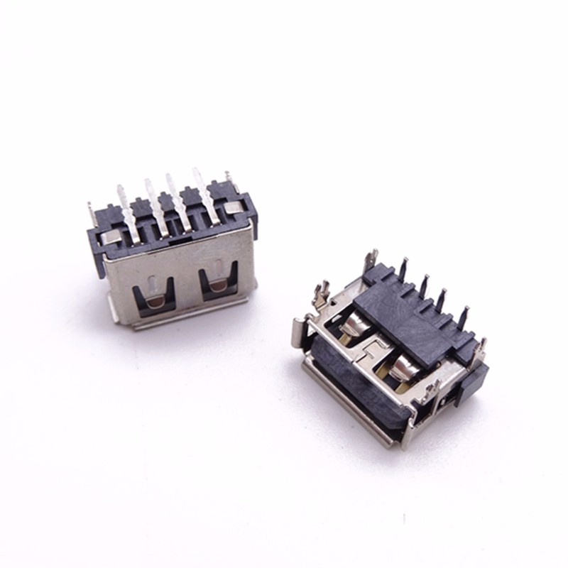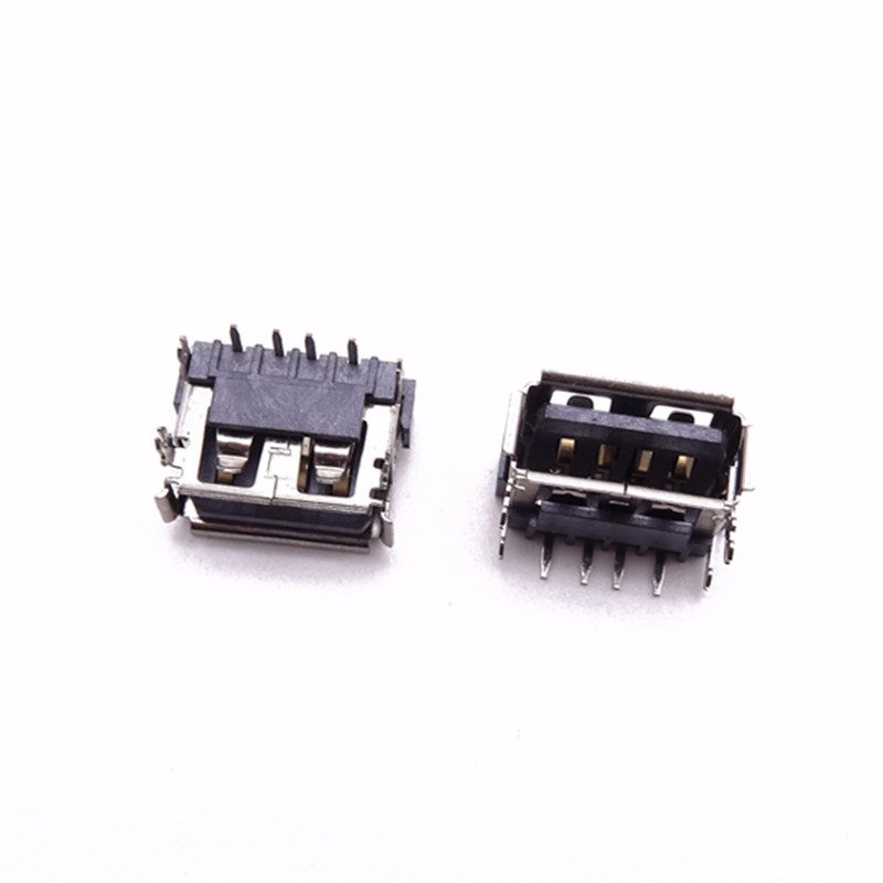 USB 2.0母座 短體10.0四腳插板 針DIP 6.5H高 卷邊黑膠