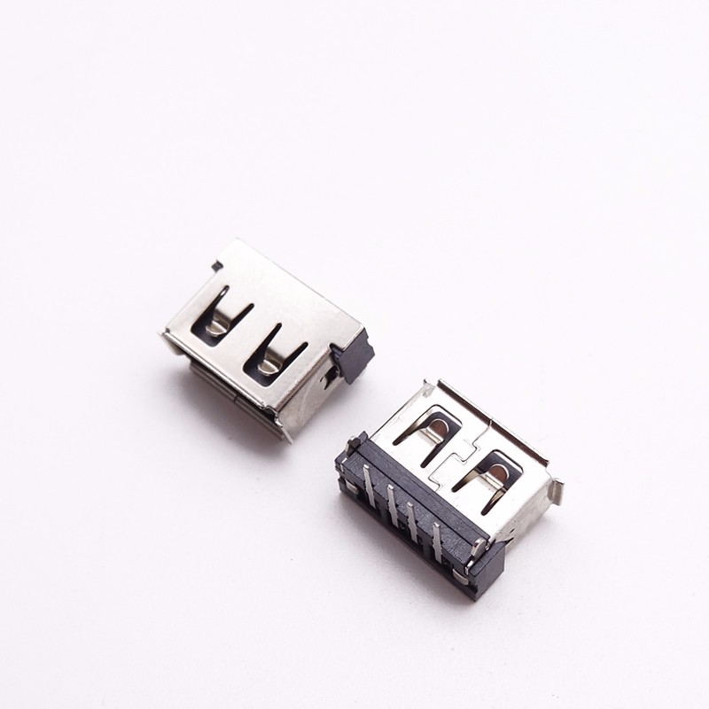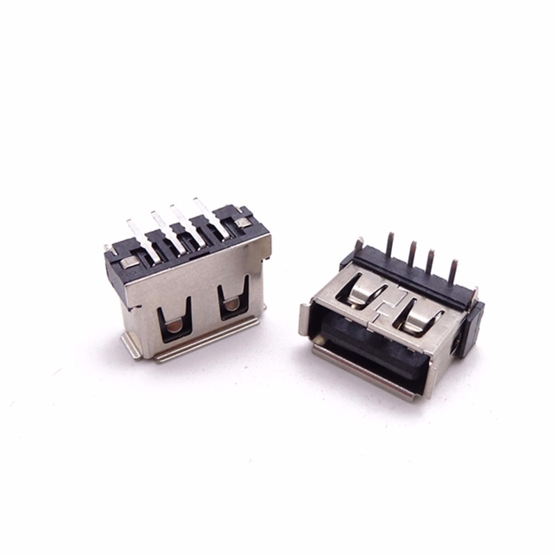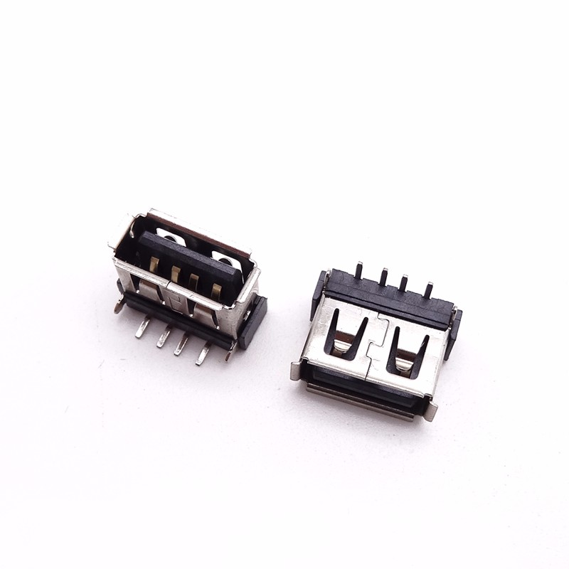 USB 2.0母座 短體10.6 后兩腳90度插板 卷邊黑膠
