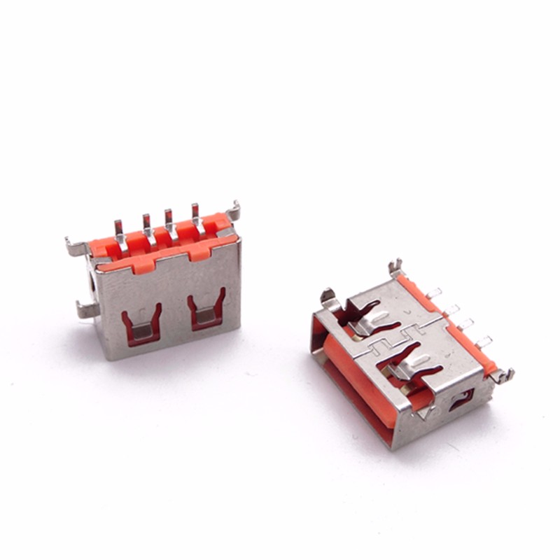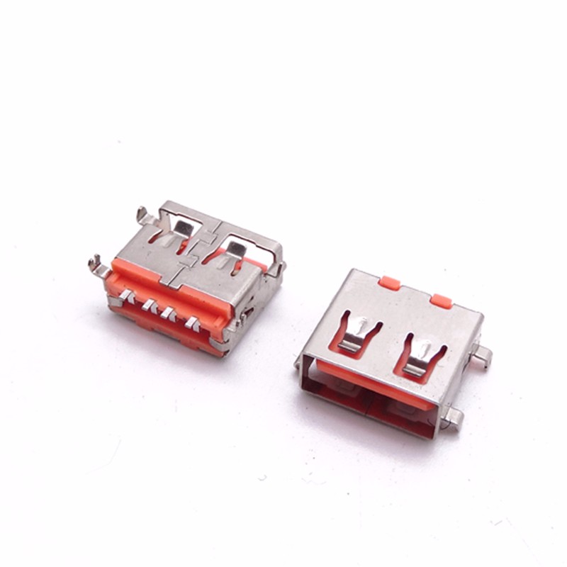 USB 2.0母座 短體11.0沉板1.1 SMT母座 直邊橙膠