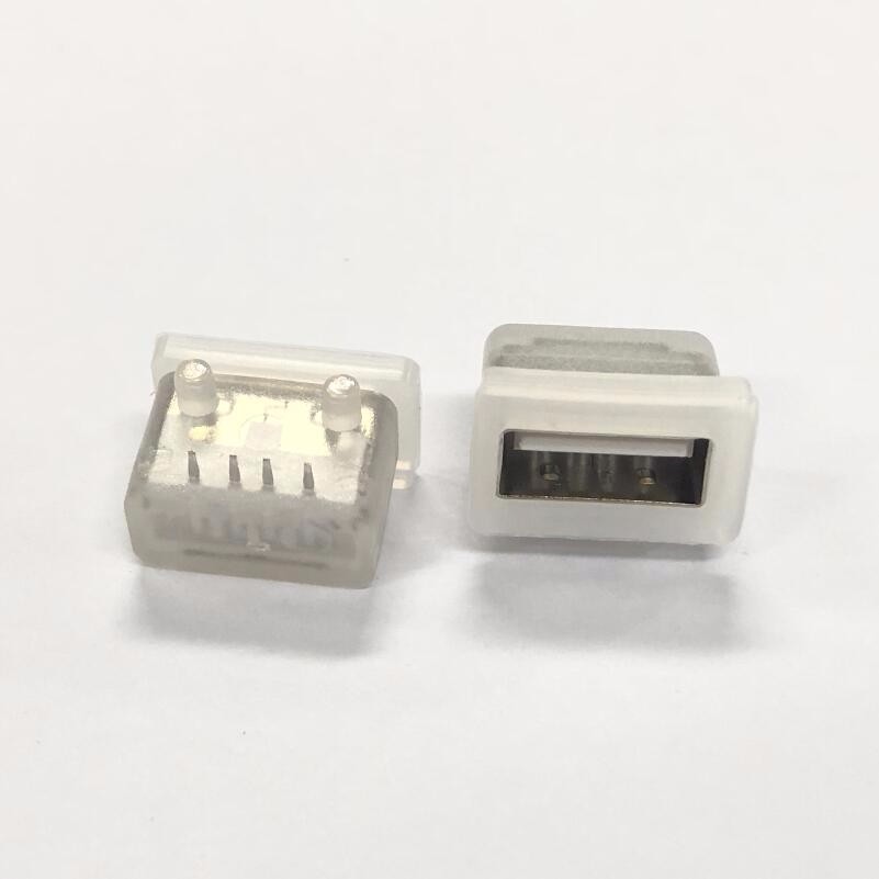 USB 2.0母座 防水A母90度4P插板 有柱 帶防水圈