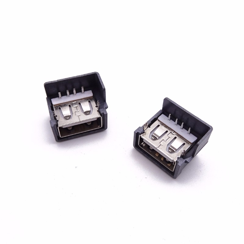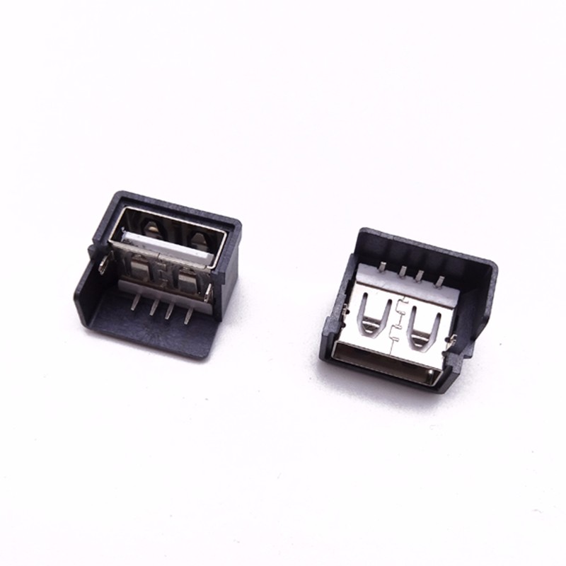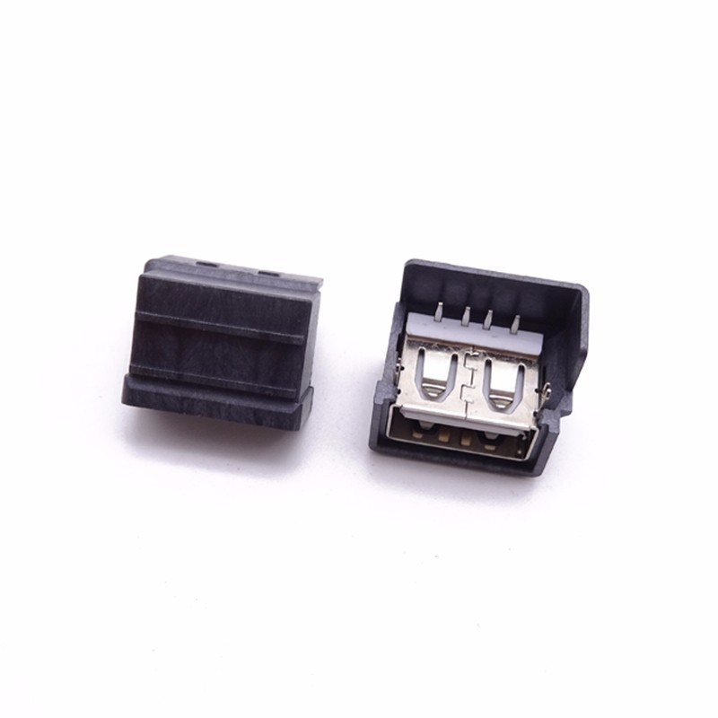 USB 2.0母座 三星短體10.0 前兩腳插板直邊 帶黑殼