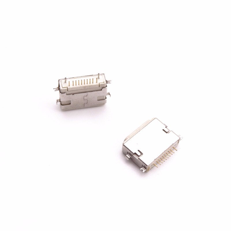 蘋(píng)果 10P母座 沉板SMT前插后貼 帶彈白膠 帶地腳