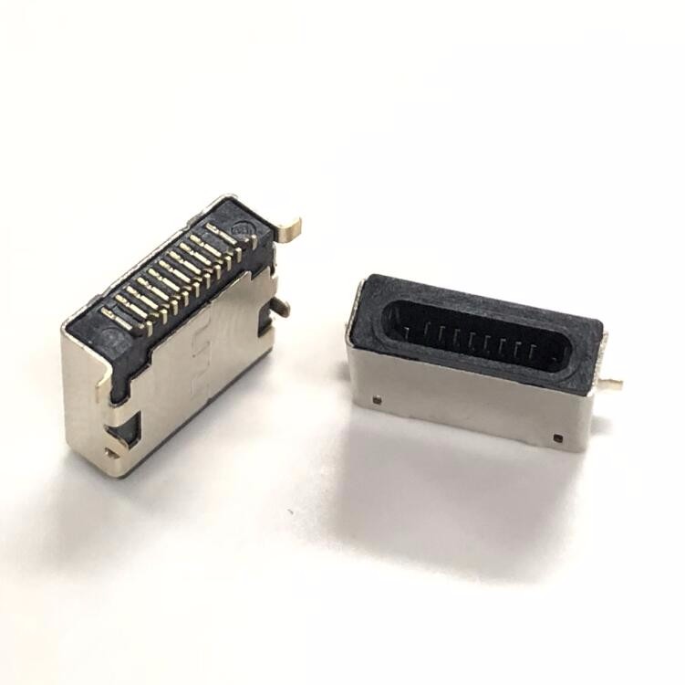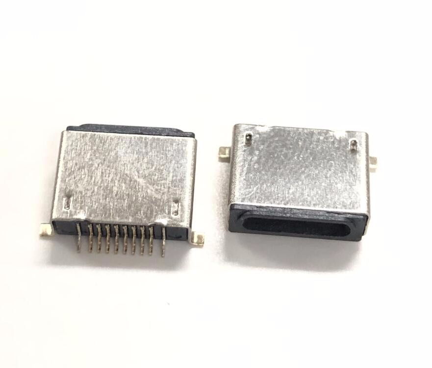 蘋果10P母座 板上前插后貼SMT 全包黑膠