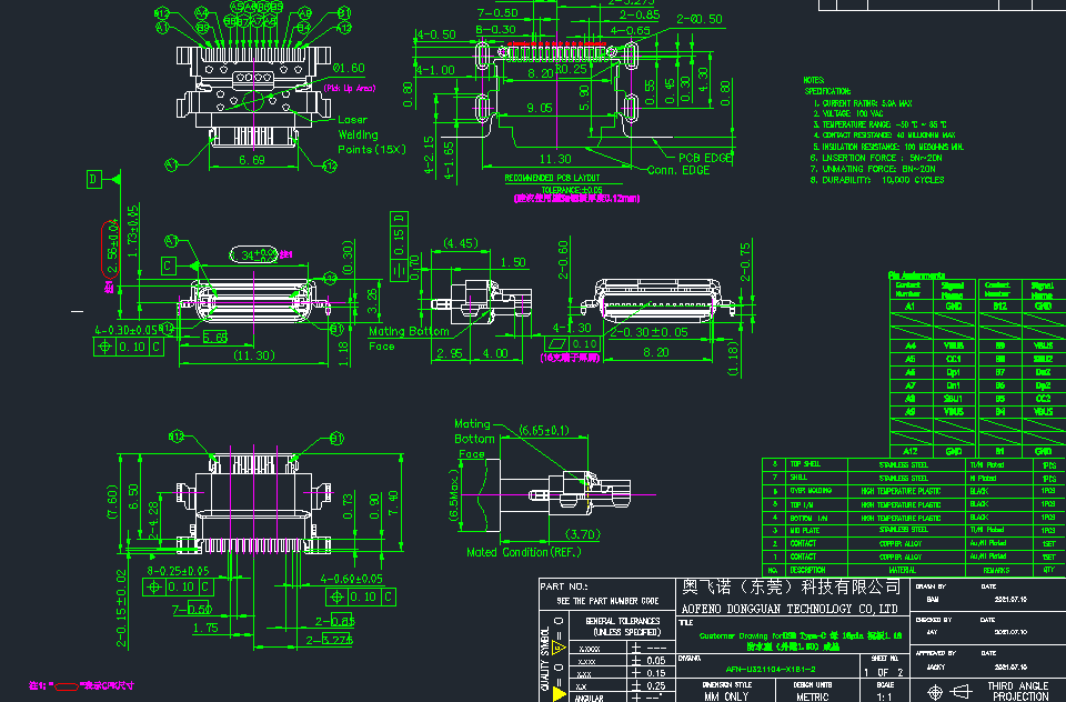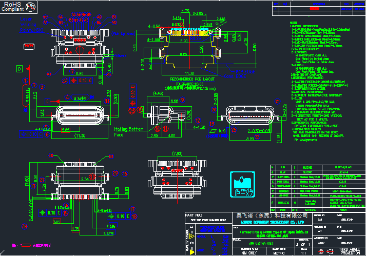 TYPE C3.1CF 16P 沉板1.18 舌片外露0.8MM/1.5MM 防水母座