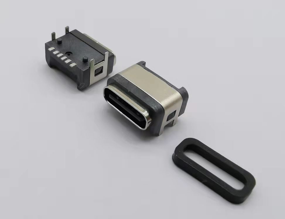 USB3.1連接器TYPE C6P防水母座6P板上四腳插板 防水IPX68