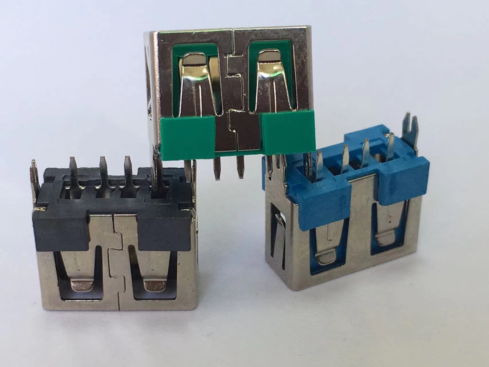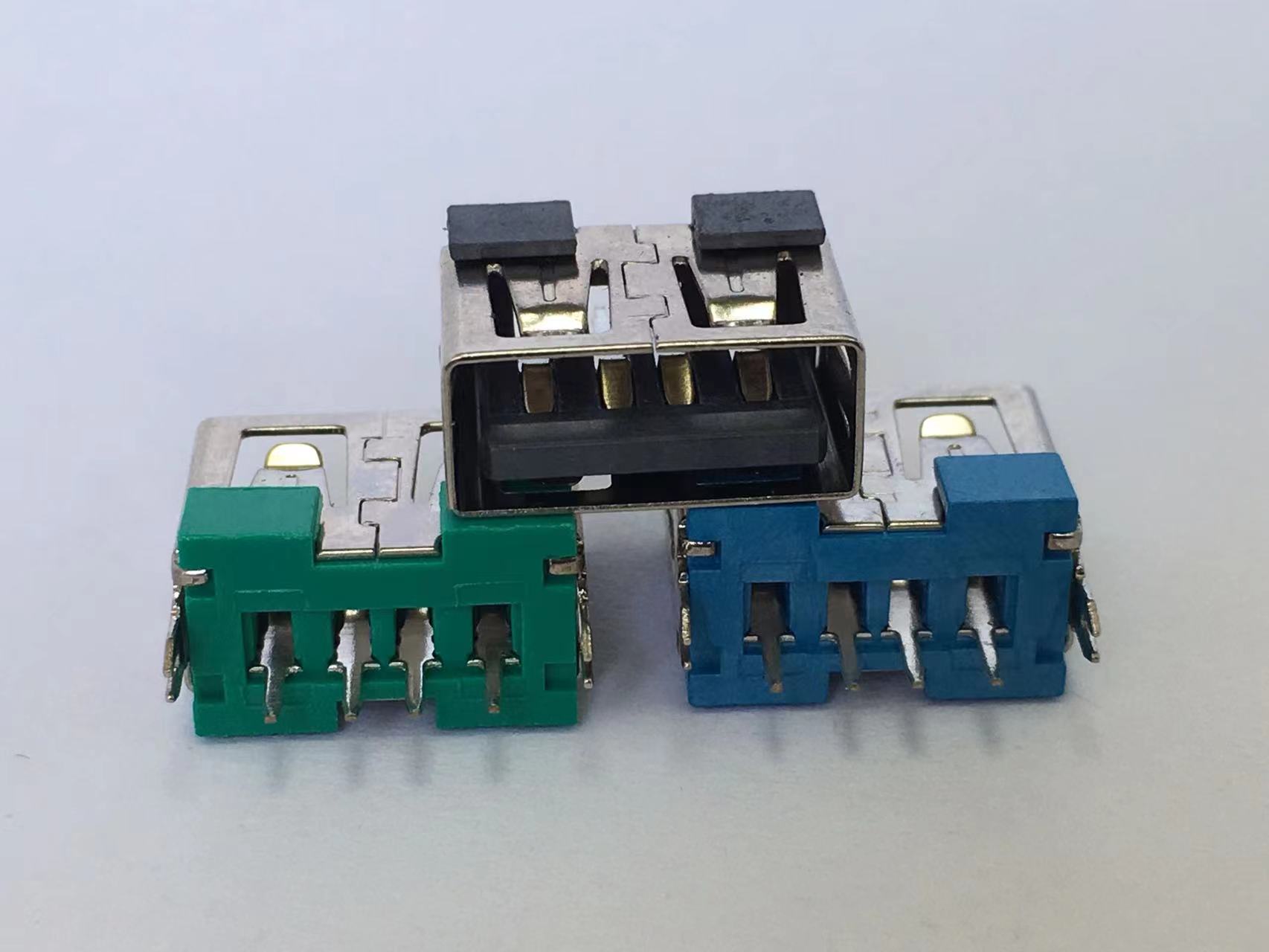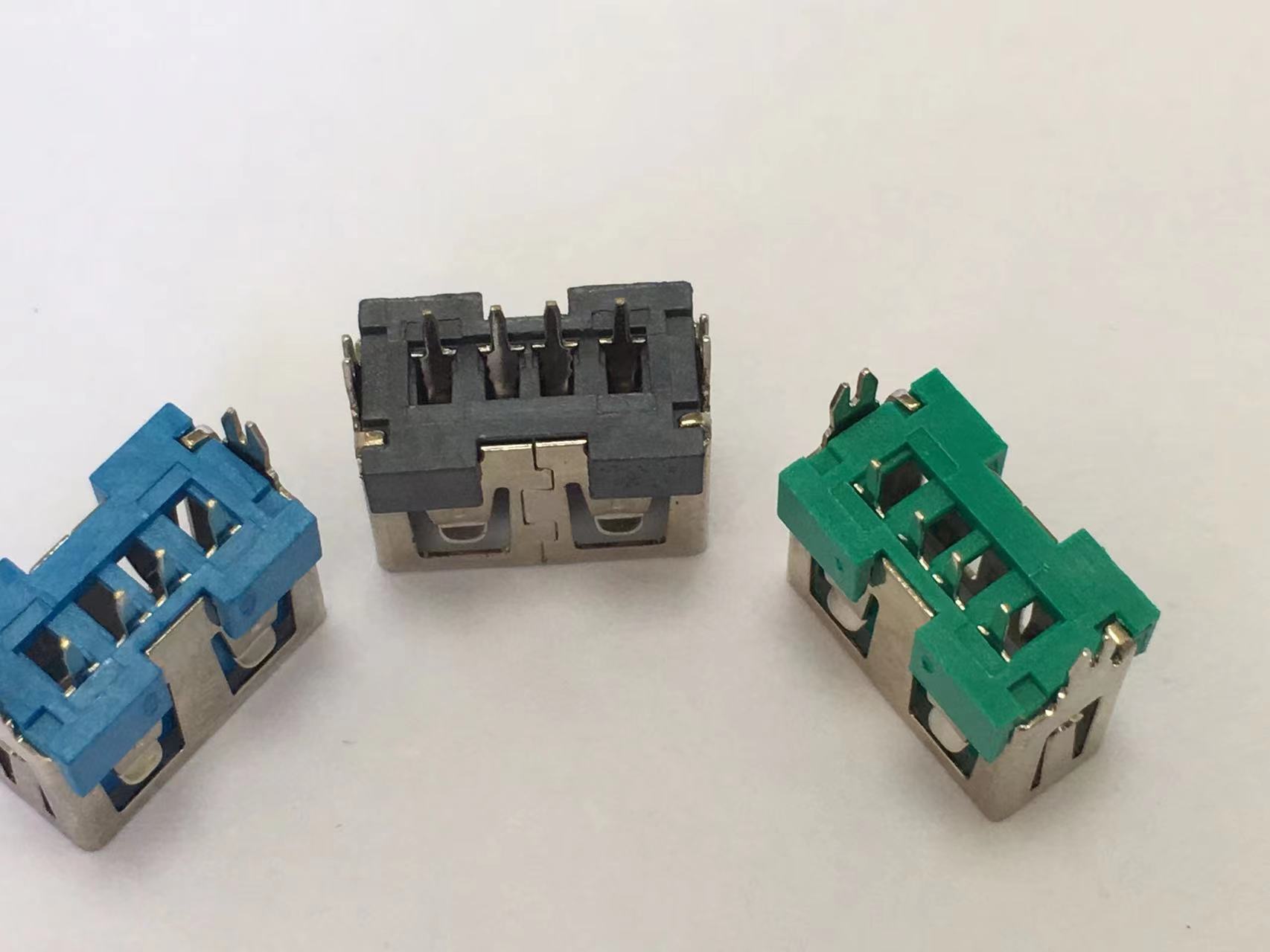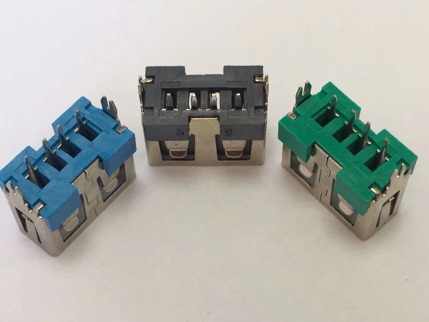 USB 2.0 短體10.0母座 180度 直邊直插 藍(lán)膠 灰膠LCP